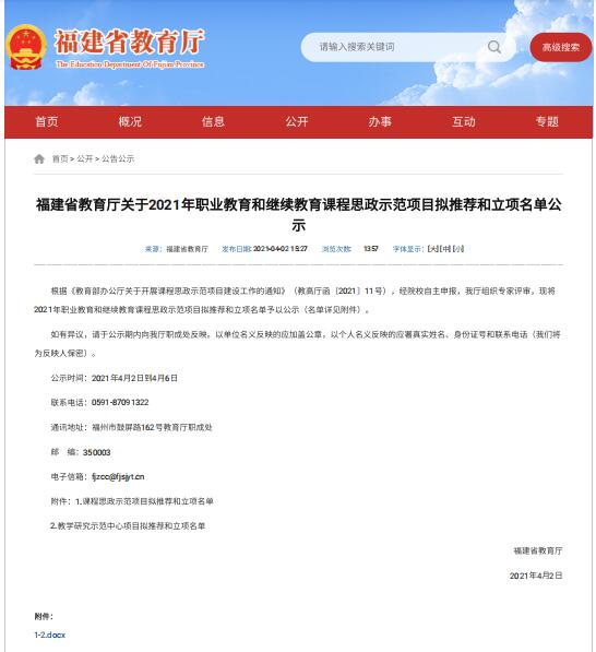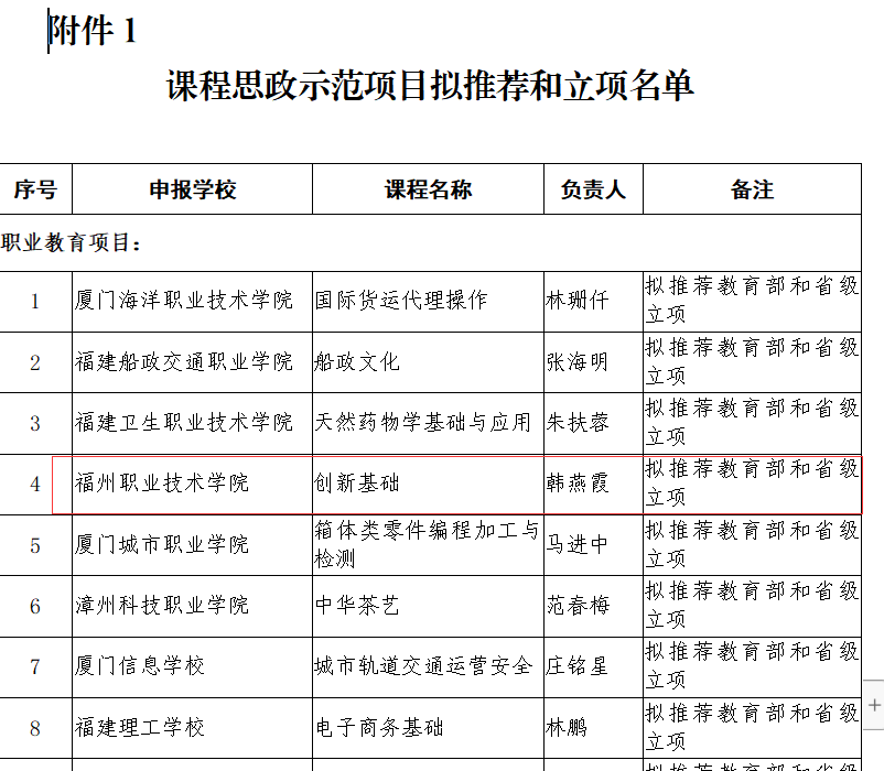 3月11日教育部辦公廳發(fā)布《關(guān)于開展課程思政示范項目建設(shè)工作的通知》,面向職業(yè)教育、普通本科教育、研究生教育和繼續(xù)教育,選樹一批課程思政示范課程、教學(xué)名師和團(tuán)隊、教學(xué)研究示范中心。我校《創(chuàng)新基礎(chǔ)》課程經(jīng)福建省教育廳評審,擬推薦參評教育部課程思政示范項目。