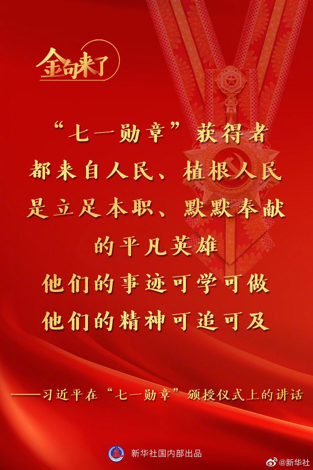 習(xí)近平代表黨中央,向“七一勛章”獲得者,表示熱烈的祝賀!致以崇高的敬意!