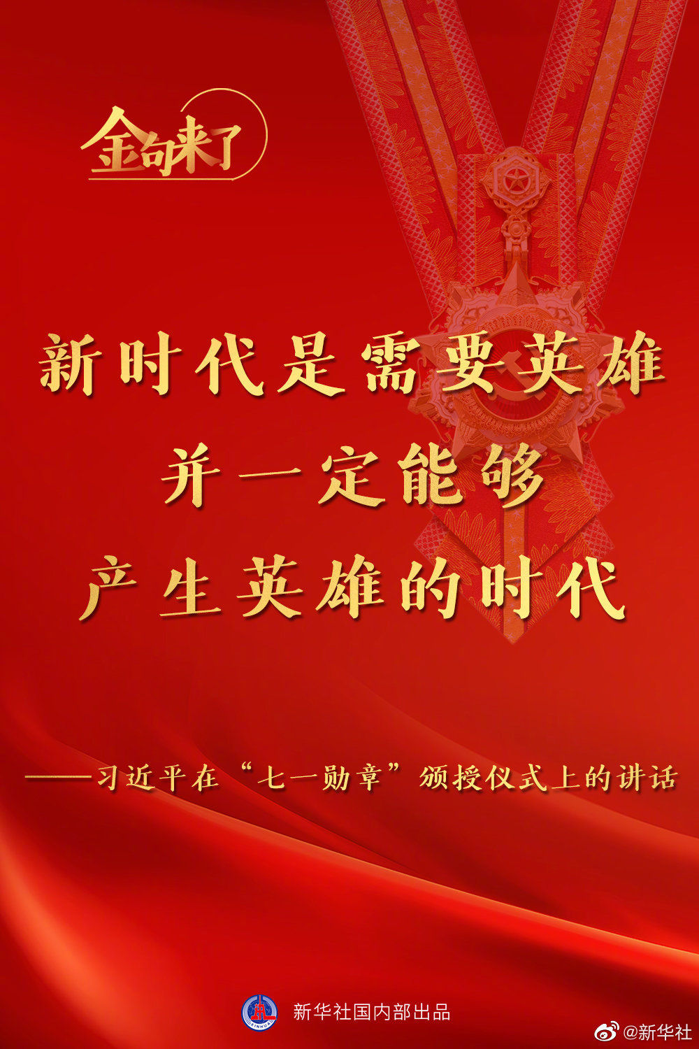 【習(xí)近平:新時(shí)代是需要英雄并一定能夠產(chǎn)生英雄的時(shí)代】習(xí)近平說,新時(shí)代是需要英雄并一定能夠產(chǎn)生英雄的時(shí)代。中國共產(chǎn)黨要始終成為時(shí)代先鋒、民族脊梁,黨員隊(duì)伍必須過硬。希望受到表彰的同志珍惜榮譽(yù)、發(fā)揚(yáng)成績,爭取更大光榮。各級黨組織要從工作和生活上關(guān)心愛護(hù)功勛黨員,大力宣傳“七一勛章”獲得者的感人事跡和崇高品德,在全黨全社會(huì)形成崇尚先進(jìn)、見賢思齊的濃厚氛圍,激勵(lì)廣大黨員、干部牢記黨的性質(zhì)宗旨,牢記黨的初心使命,不懈奮斗,永遠(yuǎn)奮斗,在全面建設(shè)社會(huì)主義現(xiàn)代化國家新征程上,向著第二個(gè)百年奮斗目標(biāo)、向著中華民族偉大復(fù)興的中國夢奮勇前進(jìn)!