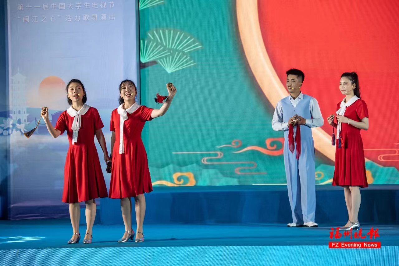 3月25日晚,由中國文聯(lián)、中國視協(xié)、中國傳媒大學(xué)聯(lián)合主辦,中國教育電視臺、福州市人民政府聯(lián)合承辦的第十一屆中國大學(xué)生電視節(jié)之《青春力量·福州啟航》“閩江之心”活力歌舞演出活動在青年廣場正式上演。我校學(xué)子表演的曲藝聯(lián)唱《福連福州福多多》在現(xiàn)場掀起了高潮。