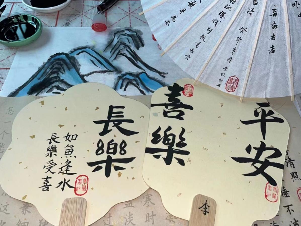 本次活動圍繞著“賡續(xù)船政文脈,書寫時代篇章”主題展開,同學們或在宣紙上書寫船政文化自立自強、開放革新的精神,或在團扇、燈籠上勾勒對新時代的祝福,或在油紙傘上涂抹青年有志的理想……活動現(xiàn)場靜謐典雅,書寫者從容優(yōu)雅。