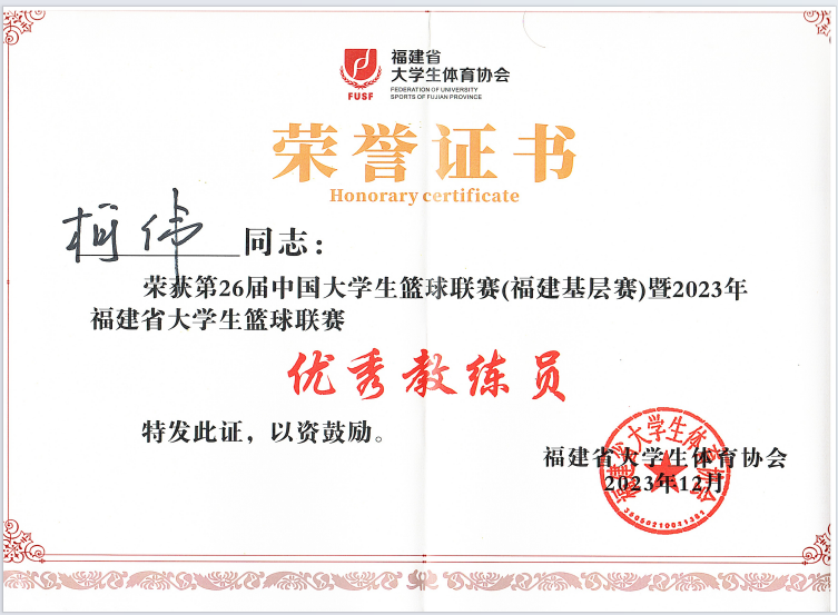 比賽中,福職健兒們敢打敢拼,克服了隊員受傷、客場作戰(zhàn)等諸多不利因素,先后戰(zhàn)勝多個傳統(tǒng)勁旅,最終我校女子籃球隊獲得一等獎,男子籃球隊獲得二等獎的好成績!同時,球隊的指導(dǎo)教師柯偉獲得了“優(yōu)秀教練”。