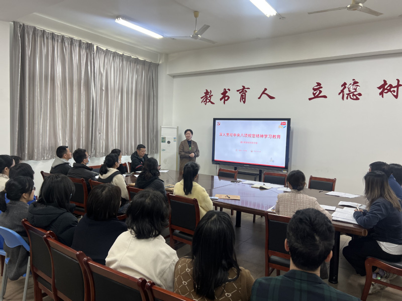 課上,劉思鍶帶領(lǐng)大家重溫了中央八項(xiàng)規(guī)定的出臺(tái)背景及核心內(nèi)容。她強(qiáng)調(diào),2012年黨中央審議通過(guò)《關(guān)于改進(jìn)工作作風(fēng)、密切聯(lián)系群眾的八項(xiàng)規(guī)定》,聚焦改進(jìn)調(diào)查研究、精簡(jiǎn)會(huì)議活動(dòng)、精簡(jiǎn)文件簡(jiǎn)報(bào)、規(guī)范出訪活動(dòng)、改進(jìn)警衛(wèi)工作、改進(jìn)新聞報(bào)道、嚴(yán)格文稿發(fā)表、厲行勤儉節(jié)約等8項(xiàng)要求,劍指形式主義、官僚主義、享樂(lè)主義和奢靡之風(fēng),彰顯了黨中央全面從嚴(yán)治黨的堅(jiān)定決心。她要求全體黨員需秉持“打頭陣、勇?tīng)?zhēng)先、走在前、做示范”的精氣神,進(jìn)一步強(qiáng)化紀(jì)律意識(shí),將中央八項(xiàng)規(guī)定精神不折不扣地融入到師德師風(fēng)建設(shè)、教科研工作及具體教學(xué)中,更好地踐行教書(shū)育人、立德樹(shù)人的使命。與會(huì)黨員一致表示,將把學(xué)習(xí)教育成果轉(zhuǎn)化為行動(dòng)自覺(jué),為學(xué)院高質(zhì)量發(fā)展提供堅(jiān)實(shí)作風(fēng)保障。