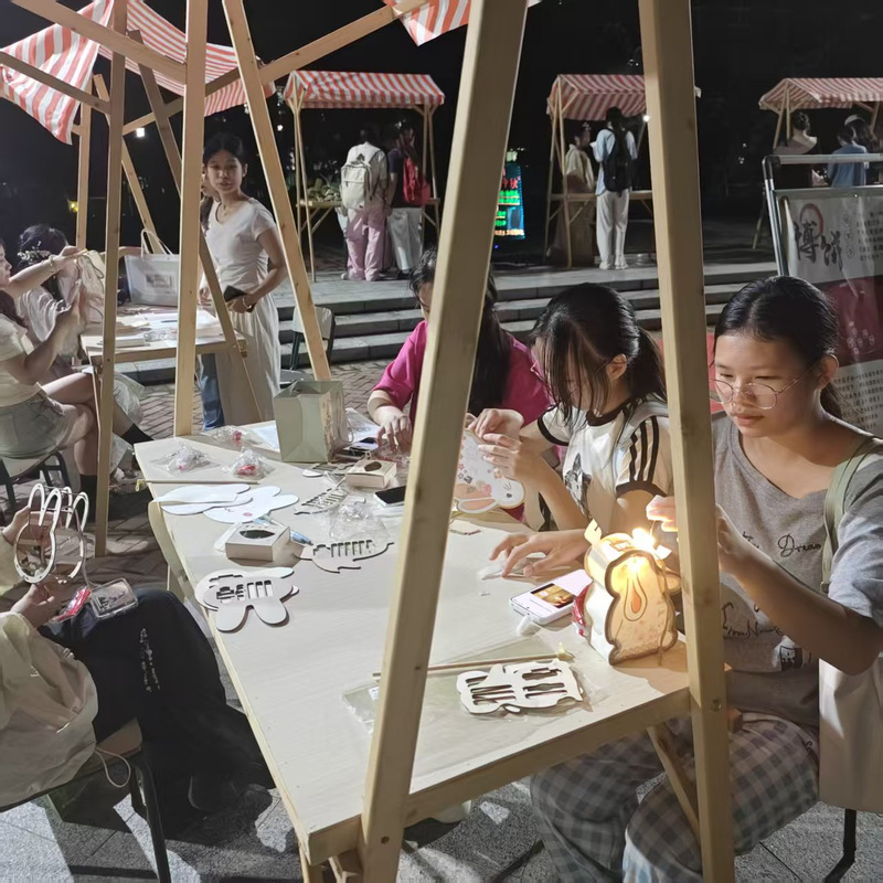活動(dòng)中漢服游園、試穿環(huán)節(jié)讓師生感受傳統(tǒng)服飾美學(xué);DIY手工花燈與木質(zhì)燈籠制作環(huán)節(jié),師生動(dòng)手體驗(yàn)傳統(tǒng)技藝;非遺博餅環(huán)節(jié)中,師生6-8人組隊(duì)擲骰,角逐狀元、榜眼等名次,工作人員實(shí)時(shí)記錄并有序兌獎(jiǎng)?;顒?dòng)尾聲,全體人員合影留念,留存中秋美好回憶。