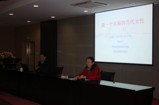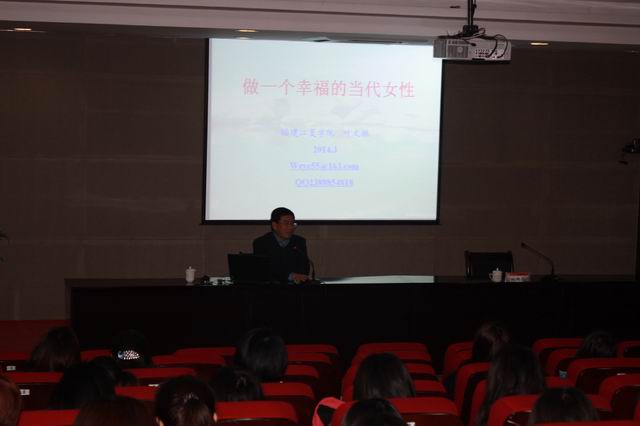 2014年3月12日下午, 院工會(huì)邀請(qǐng)福建江夏學(xué)院副校長(zhǎng)、福建省婦女理論研究會(huì)會(huì)長(zhǎng)葉文振教授為學(xué)院女教職工和女學(xué)生們獻(xiàn)上了一場(chǎng)題為《做一個(gè)幸福的當(dāng)代女性》的專(zhuān)題講座,葉文振教授從個(gè)人經(jīng)歷出發(fā),通過(guò)倫理學(xué)、心理學(xué)、經(jīng)濟(jì)學(xué)、社會(huì)學(xué)等學(xué)科的角度,用大量的事例,生動(dòng)地展示了幸福的涵義,系統(tǒng)地解釋影響幸福的主要因素,并分析了提高當(dāng)代女性幸福感的幾條主要途徑,精彩的演講贏得了眾多聽(tīng)者的共鳴。