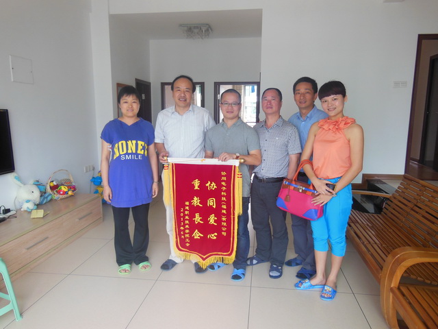 陳向梅老師一家對學(xué)院和愛心企業(yè)的幫助深表謝意。為表彰善舉,院工會(huì)向協(xié)同電子公司贈(zèng)送了錦旗。