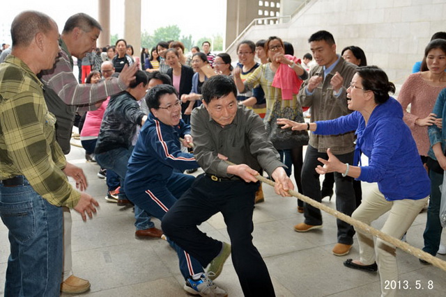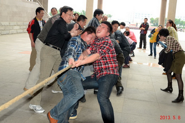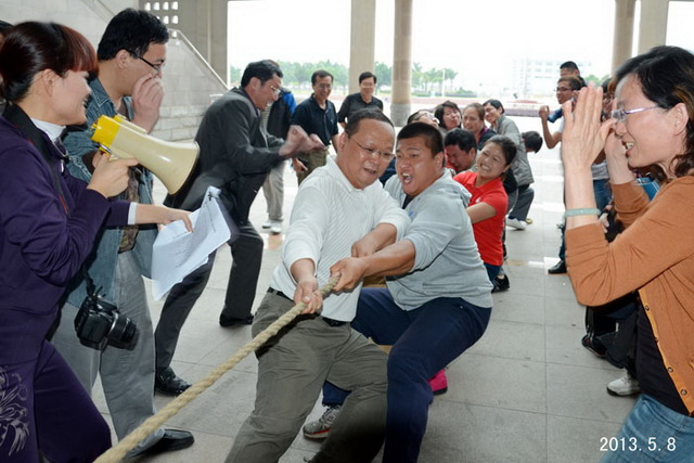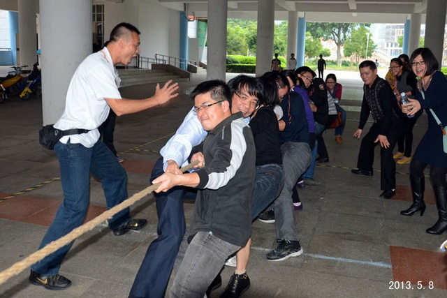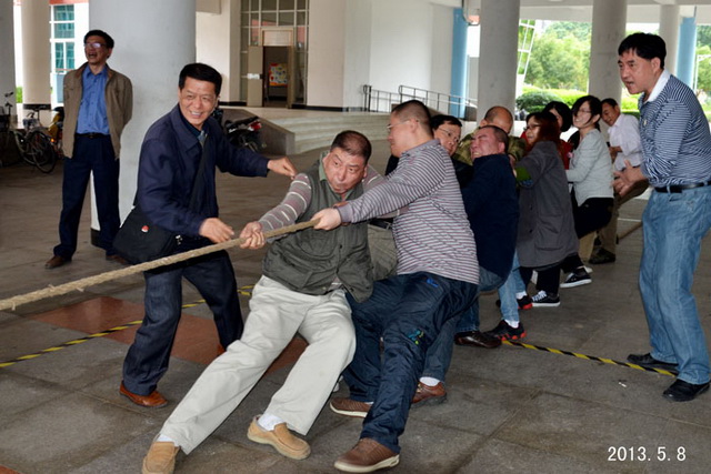 隨著一聲聲此起彼伏的吶喊助威聲,學(xué)院第五屆教職工拔河比賽活動于2013年5月8日下午激情上演。