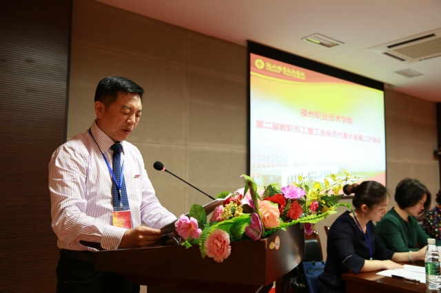 福州職業(yè)技術(shù)學(xué)院第二屆教職員工暨工會(huì)會(huì)員代表大會(huì)第二次會(huì)議于2017年4月19日在學(xué)術(shù)報(bào)告廳召開,學(xué)院117名正式代表和10名列席代表參加了會(huì)議。與會(huì)代表以飽滿的政治熱情和強(qiáng)烈的責(zé)任感,認(rèn)真履行民主權(quán)利,集思廣益,獻(xiàn)計(jì)獻(xiàn)策,共商學(xué)校改革和發(fā)展大計(jì),體現(xiàn)了高度負(fù)責(zé)的主人翁精神。