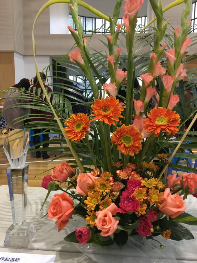 比賽以“中國夢(mèng)”為主題,分為自由式插花和對(duì)稱式插花,每隊(duì)2人,現(xiàn)場限時(shí)45分鐘內(nèi)創(chuàng)作完成。賽場呈現(xiàn)出一件件造型優(yōu)美、富有詩情畫意且內(nèi)涵豐富的花卉藝術(shù)品,令人贊嘆不已。