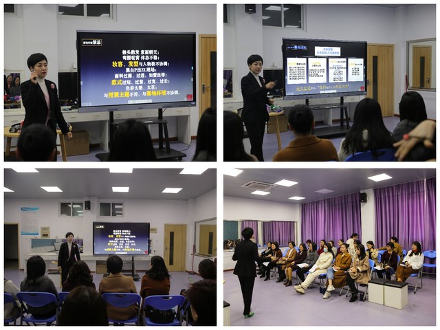 靚麗的絲巾,別致的胸針……服飾穿搭技巧的分享現(xiàn)場,大家圍繞服裝款式搭配、圍巾系法、日?;瘖y等方面展開熱烈的交流。