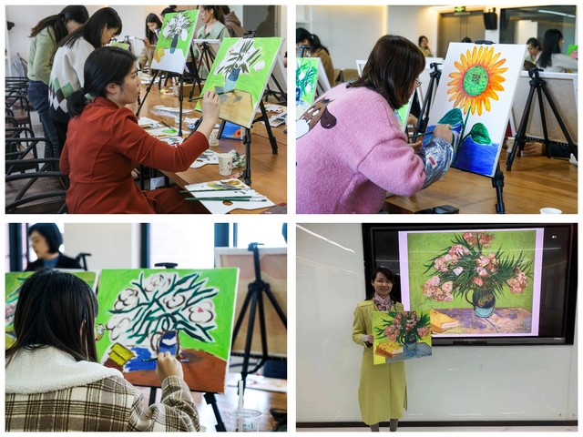 3月8日下午,插花、歡樂福跑、服飾穿搭、油畫、八段錦等豐富多彩的體驗活動分別在不同地點進(jìn)行。