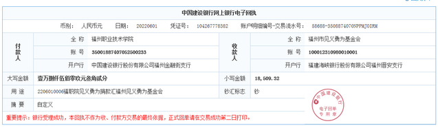 近日,我校積極響應(yīng)《向福州市見義勇為勇士捐款獻(xiàn)愛心的倡議書》(榕義委〔2022〕3號),組織教職工為見義勇為勇士捐款獻(xiàn)愛心,在校領(lǐng)導(dǎo)的帶頭下,全校22個工會小組共有345位教職工積極響應(yīng),合計(jì)捐款金額18509.32元。其中,組織部工會宣傳部、教務(wù)處科技處、學(xué)工處團(tuán)委、人事處發(fā)規(guī)處、財(cái)務(wù)處采購與招標(biāo)中心、紀(jì)檢監(jiān)察審計(jì)室、電大與繼教中心、交通工程系等8個工會小組均全員參與捐款獻(xiàn)愛心,公共教育部工會小組更是慷慨解囊,23位教職工合計(jì)捐款2300元。