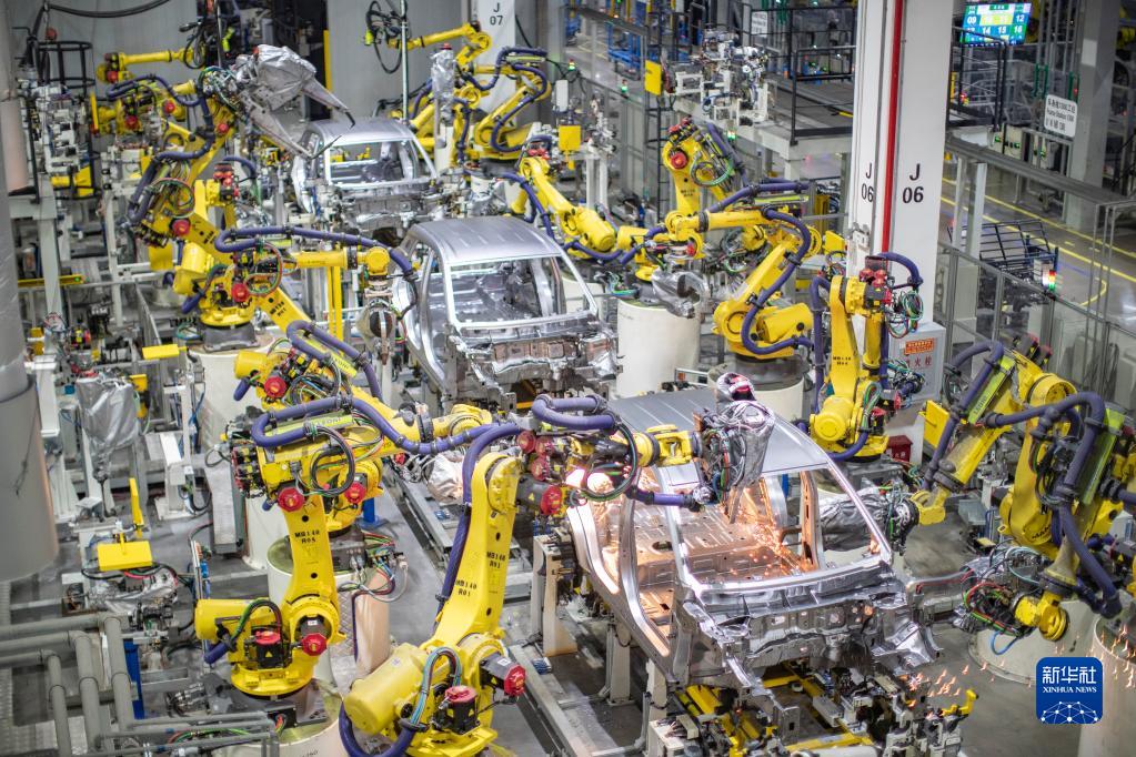 重慶一家新能源汽車企業(yè)使用智能化焊接機(jī)器人進(jìn)行焊接作業(yè)(2021年4月2日攝)。新華社記者 黃偉 攝