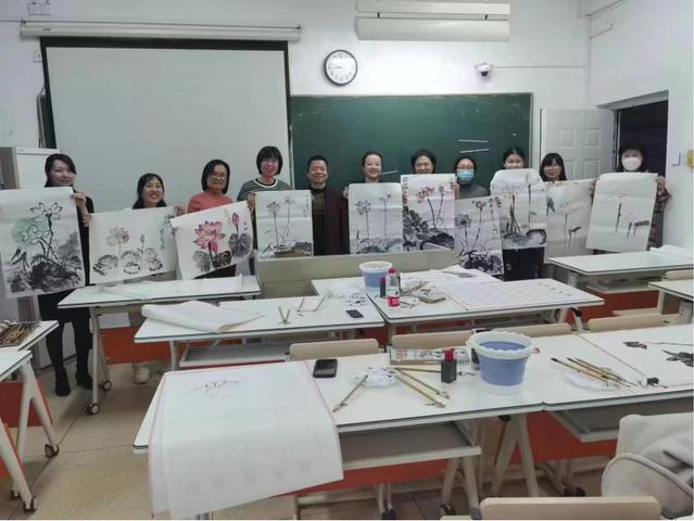 荷韻悠悠、暗香裊裊。在水墨丹青的國畫活動現(xiàn)場,女教職工們將荷花“中通外直,不蔓不枝,香遠(yuǎn)益清,亭亭凈植”姿態(tài)一筆一畫呈現(xiàn)在宣紙上,彰顯出了中華優(yōu)秀傳統(tǒng)文化的水墨情懷。