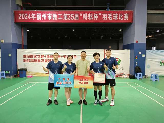 5月25日至26日,福州市教育工會(huì)主辦的第35屆“耕耘杯”羽毛球比賽在福州市工人文化宮舉行,經(jīng)過兩天的激烈角逐,由我校羽毛球協(xié)會(huì)會(huì)長夏勇為領(lǐng)隊(duì),陳琳琳、王琳、劉薇、劉偉等隊(duì)員組成的教工代表隊(duì)在61支代表隊(duì)中脫穎而出,喜獲比賽二等獎(jiǎng),隊(duì)員們頑強(qiáng)拼搏、奮勇爭先,充分展示了“福職人”積極向上的精神風(fēng)貌。