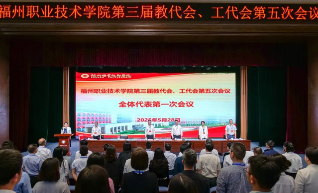 5月28日,福州職業(yè)技術(shù)學(xué)院第三屆教職工代表大會(huì)、工會(huì)會(huì)員代表大會(huì)第五次會(huì)議在學(xué)校禮堂隆重舉行。校黨委書(shū)記王建生出席會(huì)議并講話,黨委副書(shū)記、校長(zhǎng)陳念東作學(xué)校工作報(bào)告,黨委副書(shū)記劉春蘭主持會(huì)議。校領(lǐng)導(dǎo)張?zhí)m英、陳偉、饒緒黎,教代會(huì)、工代會(huì)正式代表及列席代表共計(jì)200余人匯聚一堂,以高度的使命感和責(zé)任感,共同為學(xué)校的改革發(fā)展出謀劃策,擘畫(huà)未來(lái)發(fā)展藍(lán)圖。