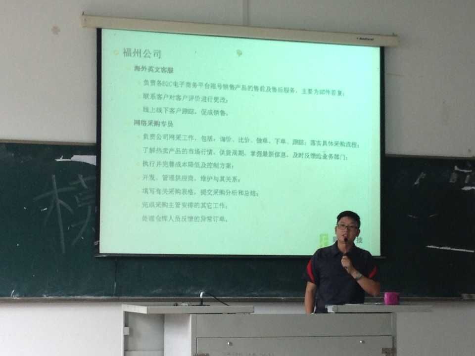 2015年7月2日,應(yīng)用外語系商務(wù)英語教研室邀請福建易橋科技有限公司陳輝總經(jīng)理、人力資源部尤佳經(jīng)理在實(shí)驗(yàn)樓310多媒體教室舉行專場招聘會,2013級商務(wù)英語專業(yè)全體學(xué)生參加了招聘會。