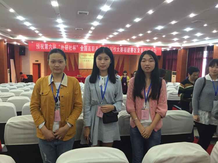 2015年11月15日,由教育部職業(yè)院校外語類專業(yè)教學指導委員會主辦的第六屆“外研社杯”全國高職高專英語寫作大賽福建賽區(qū)選拔賽在福建商業(yè)高等??茖W校舉行,參賽選手們在2個小時的答題時間內根據(jù)題目闡釋自己的觀點和認識。在比賽中,選手們精神集中、思路開闊,在有限時間內充分展現(xiàn)了自己在職場情境下運用英語解決實際問題的能力和職業(yè)素養(yǎng),同時也用英語詮釋了當代青年學生的思想深度。在激烈的競爭中全省有7名選手榮獲公共英語組特等獎,我院選手2015級會計專業(yè)的游佳敏同學在應用外語系劉燕茹老師的精心指導下入圍公共英語組特等獎,并將于12月9日作為福建省代表隊赴京參加全國總決賽。