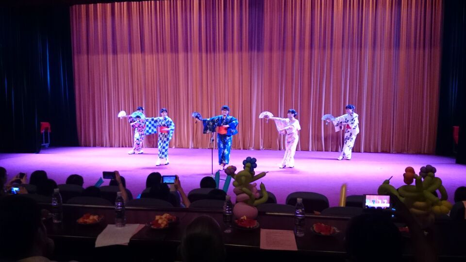 匯報會共有十二個節(jié)目,整場節(jié)目皆以英語和日語進行講述互動,大屏幕同步播放中文翻譯,以便在場觀眾理解大意。匯報會除第二課堂所學內容成果匯報外,還有學生的創(chuàng)意表演。日語影視配音和英語經(jīng)典影視配音在匯報會中展現(xiàn)了學生流利的外語口語;日語話劇表達出學生幽默風趣的一面,使得觀眾歡喜不已;唱歌學日語展現(xiàn)了日本傳統(tǒng)文化的唯美藝術感;青春歌舞彰顯了外語系學子在外國文化學習上的優(yōu)異成效,在最后的集體大合唱《Yesterday once more》中,婉轉的曲調,感人的歌喉令在場的不少師生深受共鳴,表達了對2015屆外語系畢業(yè)生的祝賀和留戀之情。