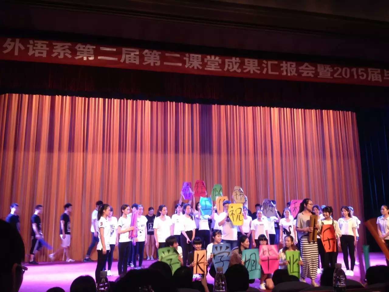 2015年6月9日晚,應用外語系在綜合樓500人禮堂成功舉辦第二屆第二課堂成果匯報會,學院黨委陳承茂書記蒞臨指導,外語系全體教師參加項目考核,全系學生觀看了節(jié)目表演。