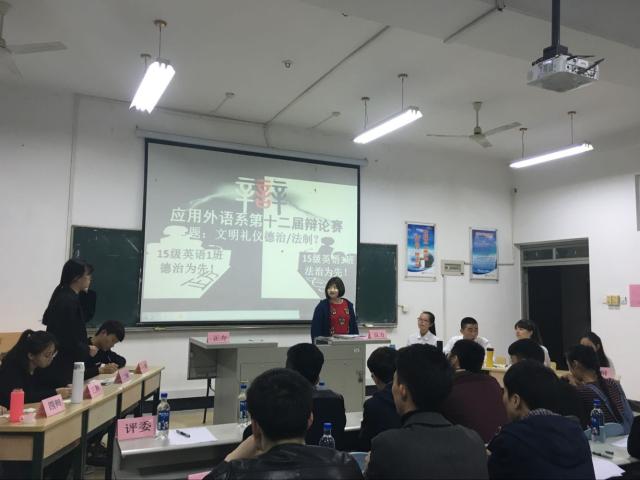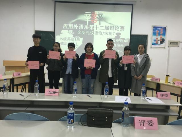 2016年3月30日晚7點,由應用外語系學習部承辦的以“社會主義核心價值觀”和“安全問題”為主題的第十二屆辯論賽決賽在實驗樓211多媒體教室正式開展。經過多次殘酷的選拔,15級商務英語一班與15級商務英語三班進入了最后賽場。外語系還邀請了各系學生會主席前來觀看本次賽事。 賽上代表正方的商英一班與代表反方的商英三班以德治為先還是法治為先這一辯題展開了激烈交鋒。在雙方一辯精彩開篇后進入攻辯環(huán)節(jié)。正反方的攻辯選手抓住雙方陳詞中的漏洞,提出一個個犀利的問題。接下來的自由辯論帶來了前所未有的激烈爭論,雙方唇槍舌劍、你來我往。最后,雙方的四辯對本次辯論賽進行大致總結,并陳述了自己的觀點。賽后,兩方辯手握手言和,展現“友誼第一、比賽第二”的參賽精神。本次決賽由反方商英三班獲得了最終勝利。 通過此次辯論賽,同學得到了適當的鍛煉,同時也領悟到了辯論的真諦,掌握了一些辯論方面的技巧。以后的日子,我們會更多的開展有關辯論方面的活動與比賽,豐富學生的第二課堂生活,同時也歡迎更多愛好辯論的同學加入我們的團隊,使自己的大學生活更加的豐富多彩。 應用外語系