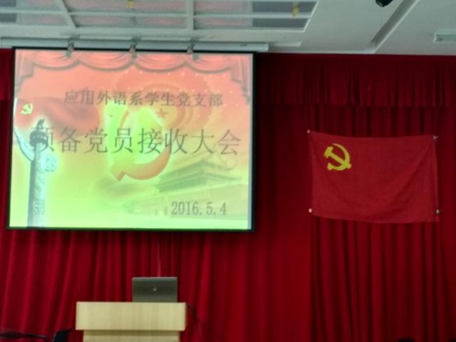 應(yīng)用外語(yǔ)系于2016年5月4日中午12點(diǎn)40分,在2號(hào)樓113多功能教室召開(kāi)了預(yù)備黨員接收大會(huì)。應(yīng)用外語(yǔ)系黨總支書(shū)記鄭高亮、副書(shū)記周炳飛、學(xué)生黨支部書(shū)記黃燕姿、學(xué)生團(tuán)支部書(shū)記陳炳曦、學(xué)生團(tuán)支部副書(shū)記劉秀釵以及學(xué)生黨員和各班入黨積極分子代表出席了本次大會(huì),由學(xué)生黨支部書(shū)記黃燕姿擔(dān)任此次大會(huì)的主持人。