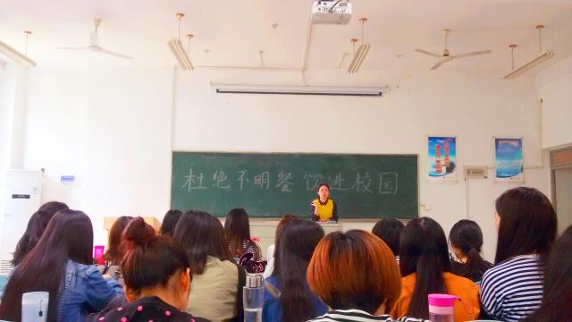近期,外賣餐飲進入校園的現(xiàn)象明顯增多,給校園秩序,環(huán)境衛(wèi)生,學(xué)生飲食安全帶來一定的影響。由于外賣餐飲食品衛(wèi)生安全沒有保證,衛(wèi)生程度難以確定。2016517日上午,應(yīng)用外語系在實驗樓211多媒體教室召開以“杜絕不明餐飲進校園”為主題的飲食安全大會。由14級輔導(dǎo)員劉秀釵擔(dān)任此次大會主講人,14級全體學(xué)生到場參加。