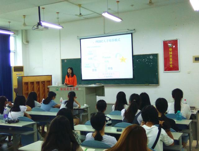 明智篤學,專業(yè)成才 ----國際教育學院(應用外語系)開展專業(yè)介紹會 2016年9月8日下午兩點,國際教育學院(應用外語系)英語教研室主任韓寧老師、日語教研室主任邱華月老師、中澳會計教研室主任嚴欽老師分別在實驗樓511多媒體教室、實驗樓102教室、實驗樓103教室為各自專業(yè)的新生開展專業(yè)介紹會,加強新生對自己即將學習的專業(yè)的認識。 英語教研室主任韓寧老師從專業(yè)的培養(yǎng)目標、主要課程、就業(yè)前景等方面給新生做了詳細介紹。希望新生能夠結合高中基礎,深入學習更多的英語知識,兼具良好的語言表達能力和書面表達能力。日語教研室主任邱華月老師為日語專業(yè)新生介紹了日語學習的主要方向和重點課程,希望新生結合自身能力,打下扎實的基礎,熟練掌握“聽說讀寫譯”的能力。中澳會計教研室主任嚴欽老師則是從國內就業(yè)方向以及出國留學等項目進行介紹,希望新生明確目標,選擇適合自己的發(fā)展道路前進。 本次專業(yè)介紹會是大一新生來到學校后第一次接觸有關專業(yè)方面的知識,通過專業(yè)老師的認真介紹,相信2016級的新生對自己今后的學習任務和奮斗目標都更加明確。同時希望新生在剛進校就養(yǎng)成良好的學習習慣和生活習慣,讓自己的大學生活更加充實、有意義。 國際教育學院(應用外語系)
