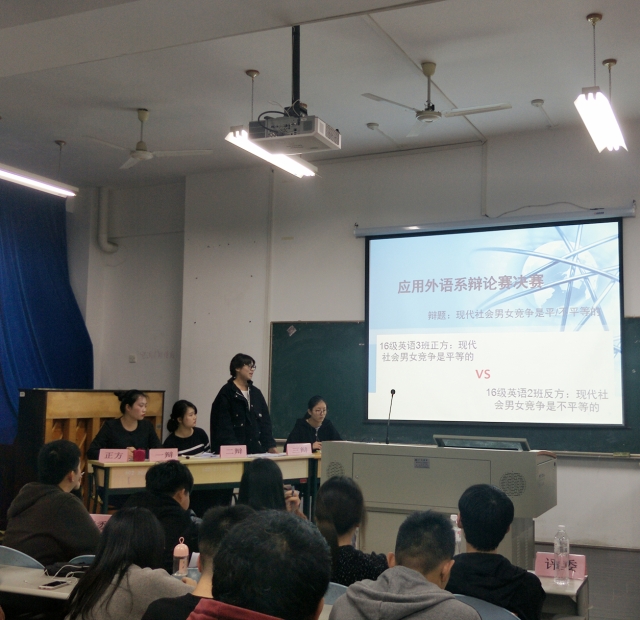 辯出自我,激揚青春 ————國際教育學(xué)院成功舉辦第十三屆辯論賽 國際教育學(xué)院 2017-03-31 為了進(jìn)一步提高學(xué)生的思辨能力,加強學(xué)生之間的交流。2017年3月30日,由國際教育學(xué)院學(xué)習(xí)部承辦的第十三屆辯論賽決賽在實驗樓511多媒體教室正式開展。此次決賽的辯題為:“現(xiàn)代社會男女競爭是否平等”。經(jīng)過多次殘酷的選拔,16級商務(wù)英語二班與16級商務(wù)英語三班進(jìn)入了最后賽場。外語系還邀請管理系蔡珍珍、計算機系施昭涵前來觀看本次賽事。 賽上代表正方的商英三班與代表反方的商英二班以現(xiàn)代社會男女競爭是否平等這一辯題展開了激烈交鋒。在雙方一辯精彩開篇后進(jìn)入攻辯環(huán)節(jié)。正反方的攻辯選手抓住雙方陳詞中的漏洞,紛紛提出犀利的問題。接下來的自由辯論帶來了前所未有的激烈爭論,雙方唇槍舌劍、你來我往。最后,雙方的四辯對本次辯論賽進(jìn)行總結(jié),并陳述了觀點。賽后,兩方辯手握手言和,展現(xiàn)“友誼第一、比賽第二”的參賽精神。本次決賽由正方商英三班獲得了最終勝利。 此次辯論賽的成功舉辦,既提高了學(xué)生的思辨能力、語言組織能力和表達(dá)能力,也豐富了學(xué)生的校園文化生活。同時,為大學(xué)生提高自身綜合素質(zhì),打下良好基礎(chǔ)。 國際教育學(xué)院