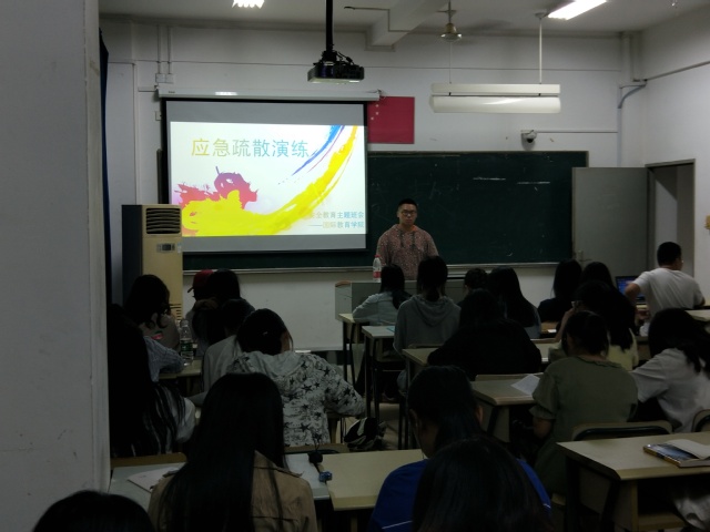 為提升學(xué)生自我保護(hù)意識(shí)和能力,樹立安全意識(shí),20181012日,國(guó)際教育學(xué)院各班級(jí)以班會(huì)的形式分別在綜合樓103203、204、205、219教室開展應(yīng)急疏散主題教育活動(dòng)。2018級(jí)全體學(xué)生參與此次活動(dòng)。