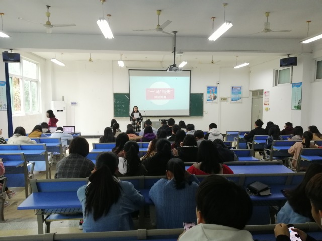 為深入貫徹習(xí)近平新時(shí)代中國(guó)特色社會(huì)主義思想和黨的十九大精神,20181212日,國(guó)際教育學(xué)院于實(shí)驗(yàn)樓211教室舉辦了“一馬當(dāng)先”知識(shí)競(jìng)賽。學(xué)生積極報(bào)名參加此次競(jìng)賽。