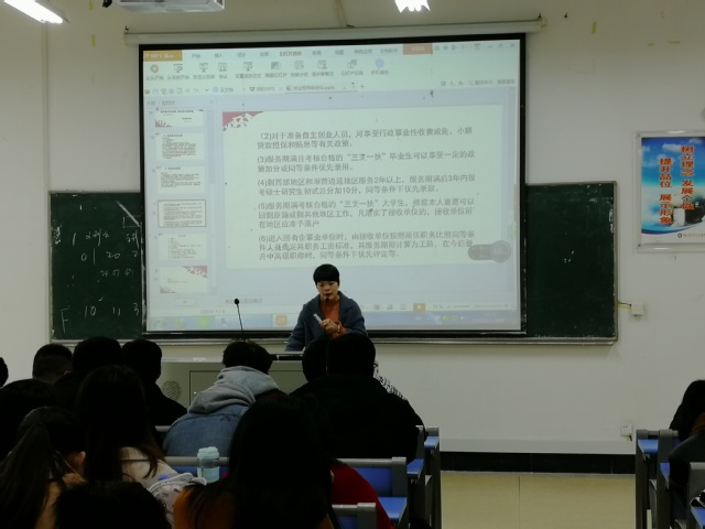 會(huì)上,黃燕姿老師講解新時(shí)代大學(xué)生入伍的重要意義,詳細(xì)解讀了國(guó)家2019年度征兵政策規(guī)定和安排,介紹了2018年度我校大學(xué)生應(yīng)征入伍情況基本情況,并鼓勵(lì)學(xué)生積極響應(yīng)國(guó)家應(yīng)征入伍的號(hào)召,到軍營(yíng)去鍛煉身心,增長(zhǎng)才干。同時(shí),黃老師還就2019屆畢業(yè)生面臨的就業(yè)形勢(shì)、就業(yè)觀念轉(zhuǎn)變、“三支一扶”、西部計(jì)劃等事宜做了具體布置,鼓勵(lì)畢業(yè)生積極做好求職就業(yè)工作,轉(zhuǎn)變思維方式,爭(zhēng)取多渠道就業(yè),更好地實(shí)現(xiàn)為社會(huì)、為國(guó)家做貢獻(xiàn)的夢(mèng)想。