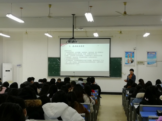2019121日,國(guó)際教育學(xué)院在實(shí)驗(yàn)樓211多媒體教室召開基層就業(yè)暨征兵動(dòng)員大會(huì)。由黃燕姿老師擔(dān)任主講人,全體應(yīng)屆畢業(yè)生參加此次大會(huì)。