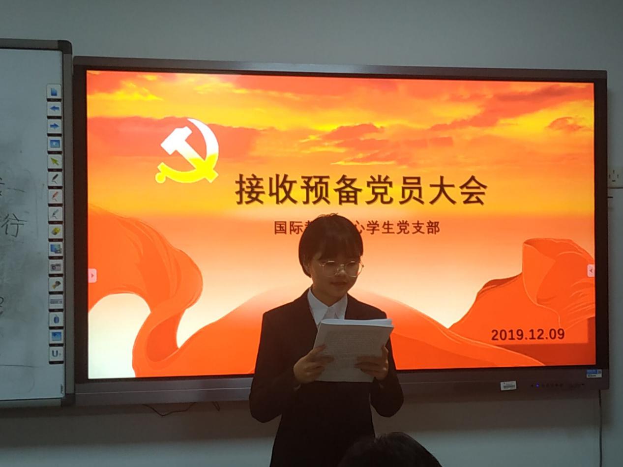 國際教育中心學(xué)生黨支部召開預(yù)備黨員接收大會