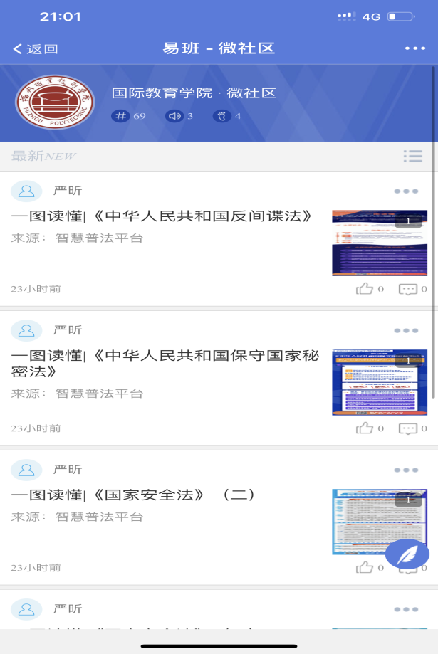 活動期間我院充分利用QQ、微信、微博、易班、云班課等網(wǎng)絡(luò)平臺向全體師生普及國家安全應(yīng)知應(yīng)會知識和相關(guān)法律法規(guī),通過主題“云”班會等形式開展線上討論;廣泛組織全體師生觀看全民國家安全教育日新聞宣傳報道和主題節(jié)目,暢談心得體會;組織學(xué)生認(rèn)真學(xué)習(xí)教育部錄制2020年國家安全教育日高校公開課并參與國家安全知識在線問答活動,強化學(xué)生責(zé)任意識,提高維護國家安全的能力。