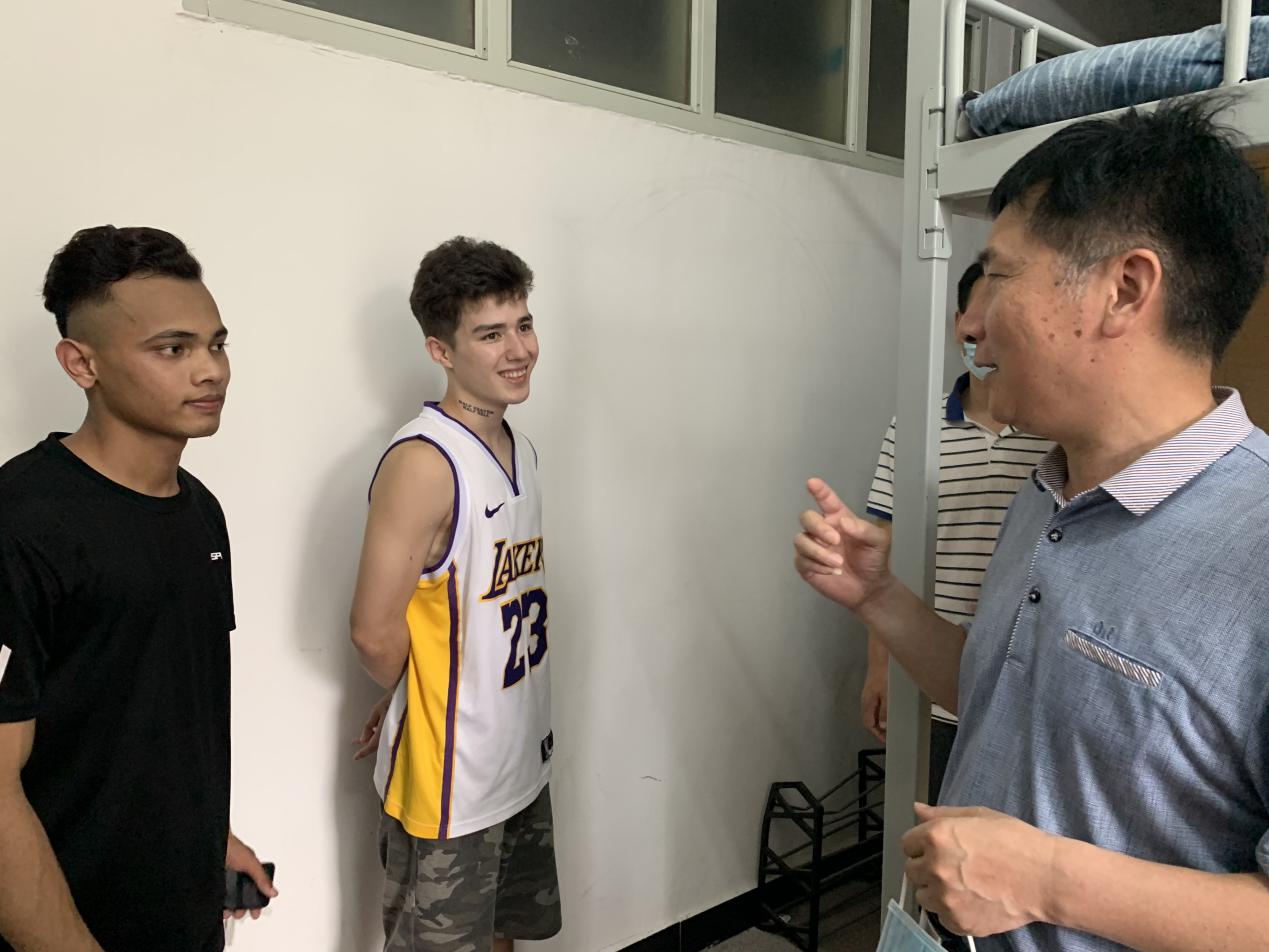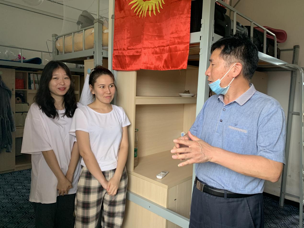 國際教育學(xué)院 2020-06-25 端午佳節(jié),6月25日下午,劉松林副校長在國際教育學(xué)院輔導(dǎo)員和值班干部后勤處宋世軍副處長陪同下一同來到職教中心6號樓國際學(xué)生宿舍,走訪慰問留校國際學(xué)生,向疫情期間留在校園內(nèi)的國際學(xué)生表達(dá)了誠摯的關(guān)心和問候,并向所有國際學(xué)生送上節(jié)日的祝福。 在國際學(xué)生宿舍,劉松林副校長向國際學(xué)生介紹了端午的習(xí)俗,鼓勵大家通過親歷中國傳統(tǒng)節(jié)日,切身感受和認(rèn)識中國文化。隨后,他親切地詢問了在校國際學(xué)生的學(xué)習(xí)、生活、飲食方面的情況,及時了解并協(xié)調(diào)解決他們遇到的困惑和難題。最后,劉松林副校長提醒大家要遵守學(xué)校的管理規(guī)定,增強安全意識,警惕疫情,保持宿舍干凈衛(wèi)生,按時通風(fēng),做好個人防護(hù)。 校領(lǐng)導(dǎo)此次親切慰問讓國際學(xué)生感受到了學(xué)校濃厚的人文關(guān)懷,國際學(xué)生對領(lǐng)導(dǎo)的關(guān)懷表示了由衷的感謝,并表示他們將繼續(xù)配合學(xué)校做好疫情防控工作,共同努力戰(zhàn)勝疫情。 國際教育學(xué)院 (圖文/嚴(yán)昕)