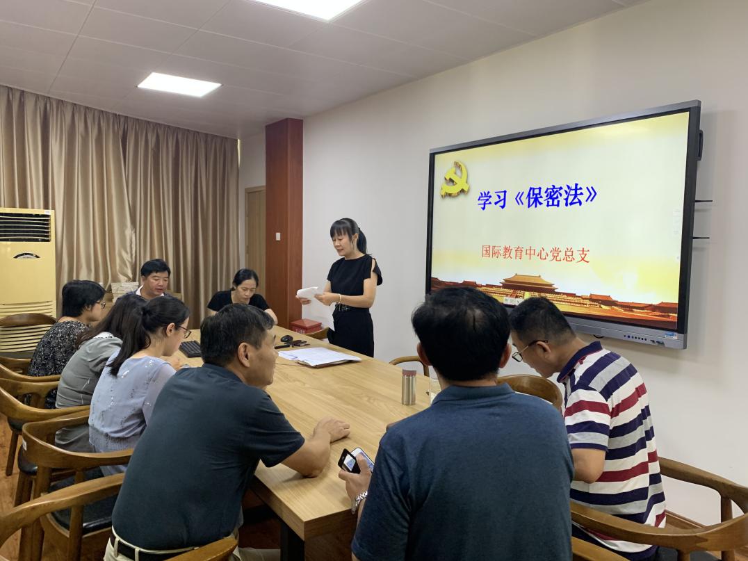 國(guó)際教育中心黨總支副書(shū)記李燕燕以“強(qiáng)化‘三個(gè)認(rèn)同’,寫(xiě)好高等教育篇章”為主題,給全體黨員上了一堂生動(dòng)的黨課,要求大家切實(shí)增強(qiáng)對(duì)習(xí)近平新時(shí)代中國(guó)特色社會(huì)主義思想的政治認(rèn)同、思想認(rèn)同、情感認(rèn)同,提高人才培養(yǎng)質(zhì)量,努力爭(zhēng)做“四有”好老師,寫(xiě)好高等教育的奮進(jìn)之筆。接著,結(jié)合中秋、國(guó)慶節(jié)時(shí)間節(jié)點(diǎn),李燕燕副書(shū)記對(duì)全體黨員進(jìn)行了從嚴(yán)治黨廉政談話,要求全體黨員干部要不折不扣地落實(shí)中央八項(xiàng)規(guī)定精神和省、市有關(guān)規(guī)定,做到“六個(gè)帶頭、六個(gè)嚴(yán)禁”,共同營(yíng)造系院風(fēng)清氣正的良好政治生態(tài)。最后,李燕燕副書(shū)記為全體師生黨員講解了《中華人民共和國(guó)保守國(guó)家秘密法》和《中華人民共和國(guó)公職人員政務(wù)處分法》內(nèi)容,督促大家自覺(jué)維護(hù)國(guó)家安全和利益,廉潔從政從教、堅(jiān)守道德情操。