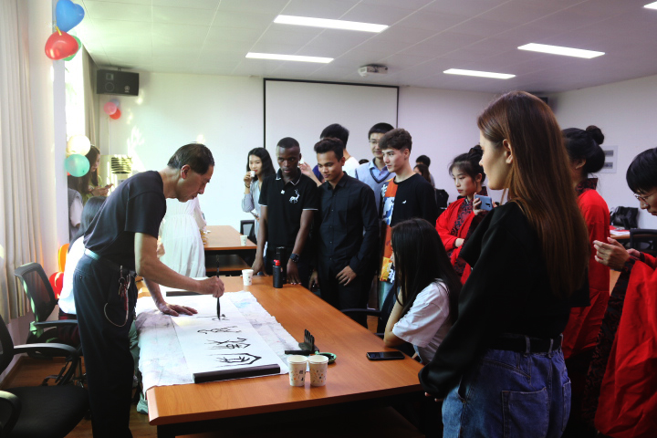 為慶祝中秋國(guó)慶雙節(jié),發(fā)揮校友大師作用,助力中國(guó)優(yōu)秀傳統(tǒng)文化傳播,國(guó)際教育學(xué)院于9月30日下午在實(shí)驗(yàn)樓234教室開(kāi)展主題為“喜迎中秋國(guó)慶,攜手歡度佳節(jié)” 中外學(xué)子攜手共慶中秋國(guó)慶活動(dòng)?;顒?dòng)邀請(qǐng)我校1998屆美術(shù)專(zhuān)業(yè)校友甲骨文書(shū)法家陳銚大師、校友會(huì)老師及校友橋手舞舞蹈隊(duì)與中外學(xué)生共同參加。 活動(dòng)開(kāi)始,校友大師陳銚老師進(jìn)行甲骨文書(shū)法表演, 在宣紙上揮毫潑墨,為同學(xué)們書(shū)寫(xiě)了一幅幅書(shū)法佳作,奉獻(xiàn)了一場(chǎng)精美的書(shū)法藝術(shù)盛宴。隨后,伴隨著緩緩的古箏聲中國(guó)學(xué)生的茶藝表演,在優(yōu)雅祥和的氣氛中展現(xiàn)出了中國(guó)茶文化的博大精深;國(guó)際學(xué)生羅華用中文演唱歌曲《但愿人長(zhǎng)久》,曲調(diào)悠揚(yáng)婉轉(zhuǎn),贏來(lái)了現(xiàn)場(chǎng)陣陣掌聲;多名國(guó)際學(xué)生積極熱情展示家鄉(xiāng)舞蹈,將對(duì)中國(guó)的美好情感寄予歌舞之間,將活動(dòng)氛圍推向高潮。最后,中外學(xué)生共同品嘗月餅,學(xué)習(xí)手工剪紙藝術(shù),活動(dòng)在一片歡聲笑語(yǔ)中拉下帷幕。 本次活動(dòng)不僅向中外學(xué)生展示了中國(guó)優(yōu)秀傳統(tǒng)文化風(fēng)采,加深了對(duì)中國(guó)傳統(tǒng)佳節(jié)的認(rèn)識(shí)和理解,也激發(fā)了中國(guó)學(xué)子的愛(ài)國(guó)熱情,增進(jìn)了中外學(xué)生友誼。 國(guó)際教育學(xué)院 (圖/游怡麟 文/嚴(yán)昕)