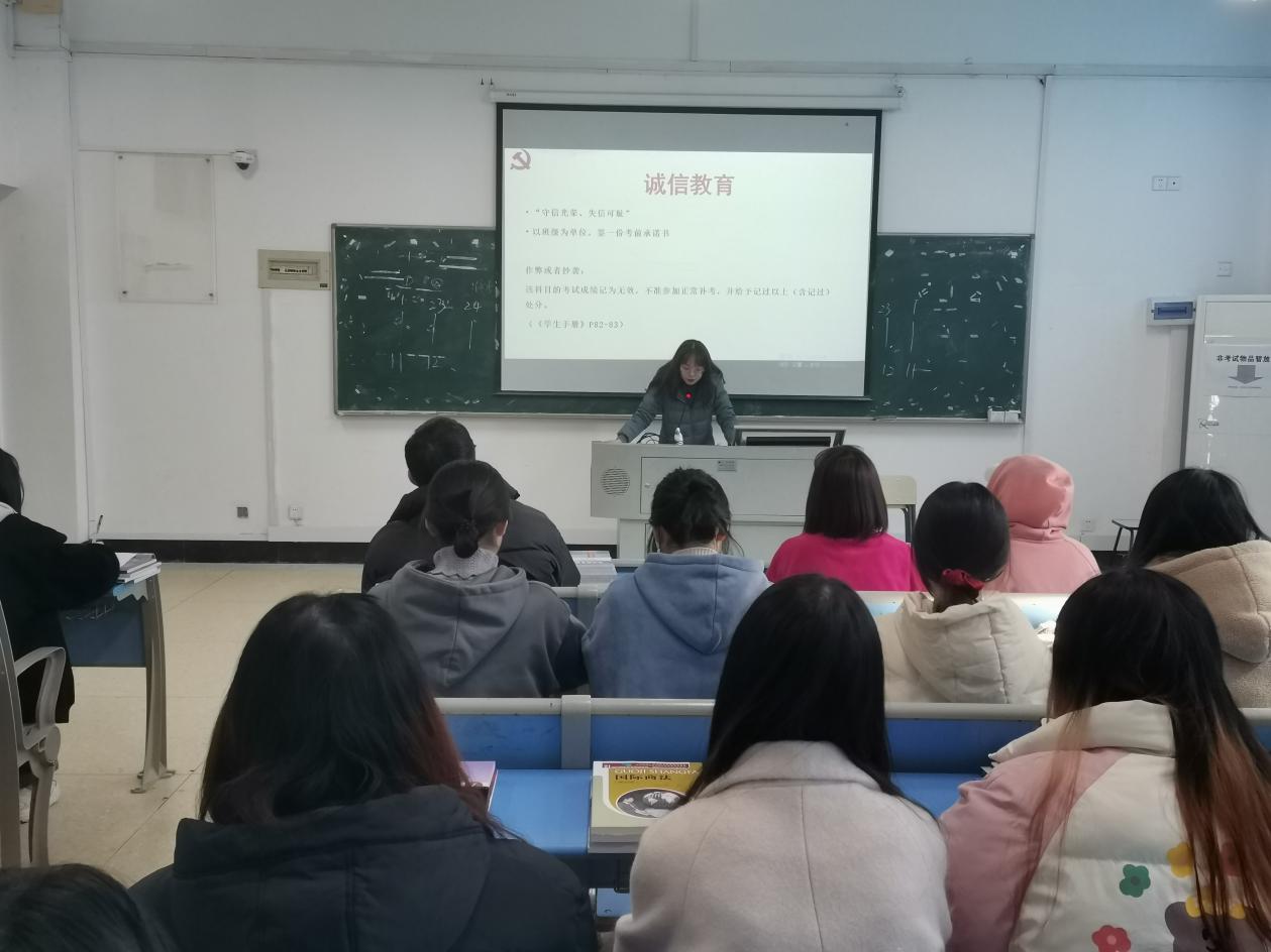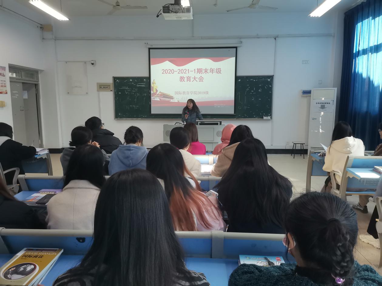 為加強班風(fēng)學(xué)風(fēng)建設(shè),引導(dǎo)學(xué)生樹立誠信考試意識,國際教育學(xué)院于2021年1月11日在實驗樓211多媒體教室開展以誠信考試教育為主題的年級大會。此次活動由輔導(dǎo)員嚴(yán)昕老師擔(dān)任主講人,全體2019級學(xué)生參加。 大會中,嚴(yán)昕老師對《學(xué)生手冊》當(dāng)中的“考場紀(jì)律”部分做了詳細(xì)說明,強調(diào)了誠信是做人的基本準(zhǔn)則和道德規(guī)范,嚴(yán)明了考試紀(jì)律,并組織全體學(xué)生簽署了《誠信承諾書》。最后,嚴(yán)昕老師希望同學(xué)們銘記考試規(guī)則,恪守誠信諾言,確保在期末考試中做到零作弊、零違紀(jì)。 此次誠信教育大會,嚴(yán)肅了考風(fēng)考紀(jì),加強了對學(xué)生的誠信教育,強化了誠信意識,為學(xué)院期末考試工作的開展夯實了基礎(chǔ)。 國際教育學(xué)院