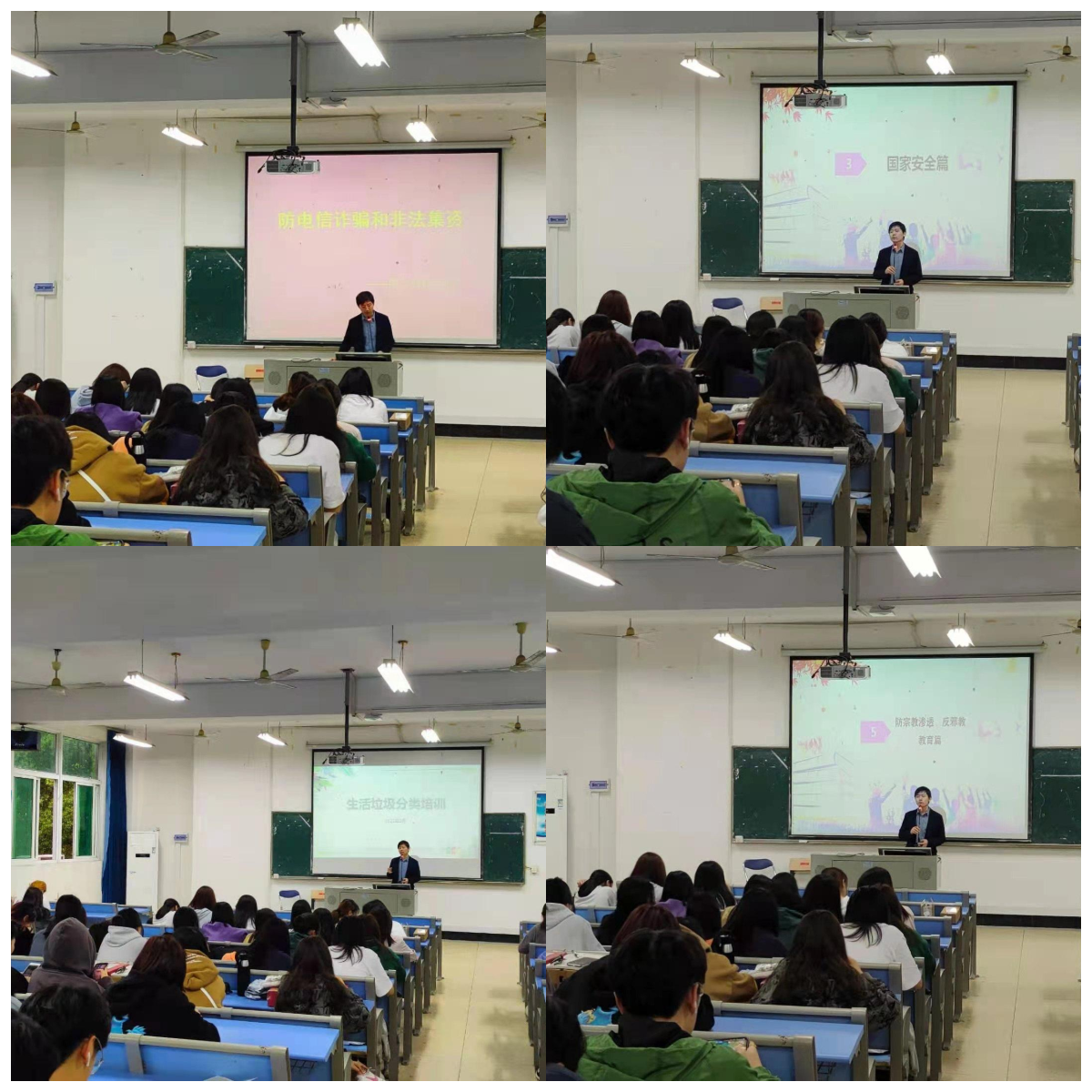 國際教育學院 2021-3-18 為進一步提高我院學生的安全防范意識,加強安全教育,2021年3月18日國際教育學院于實驗樓211組織學生開展安全教育主題大會,孫暉老師主持了本次會議。 會上,孫暉老師結合真實案例,就“防校園貸”、“防詐騙”、“防傳銷”、“防非法集資”、“反邪教”、“交通安全”、“毒品預防”等七大安全主題對全體學生進行了宣傳教育,并要求學生提高防范意識,互相監(jiān)督,發(fā)現違法違規(guī)現象及時舉報,保護自身人身和財產安全。 此外,孫暉老師還就“垃圾分類”主題進行了宣傳教育,要求學生在校期間要做好垃圾的分類投放,營造良好的校園學習和生活環(huán)境。 本次會議是落實學?!捌桨步ㄔO宣傳月”系列活動的重要內容,對提高在校生的安全意識,營造安全穩(wěn)定的校園環(huán)境具有重要意義。 國際教育學院 (圖/蘭莉俠 文/孫暉)