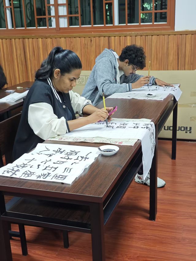墨韻傳文脈毫端鑒文明——國際教育中心2024級國際學(xué)生書法研習(xí)活動 4月9日,國際教育中心舉辦第二課堂“漢字與文化”主題書法研習(xí)活動。來自6個國家的22名2024級國際學(xué)生齊聚一堂,通過書法實踐,深入體驗漢字書寫的文化意蘊(yùn)。 活動伊始,香蘭書法社團(tuán)社員展開理論講授,闡釋漢字“以形表意”的造字智慧與哲學(xué)內(nèi)涵,從執(zhí)筆姿勢、運(yùn)筆技法等基礎(chǔ)要領(lǐng)入手,向國際學(xué)生講解書法的核心規(guī)范。未來,國際教育中心將持續(xù)深化“第二課堂”育人功能,通過文化體驗活動,構(gòu)建多元立體的傳統(tǒng)文化傳播體系。