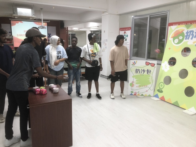 5月22日,開(kāi)設(shè)減壓體驗(yàn)館,為學(xué)生心靈提供舒緩空間。在“情緒釋放區(qū)”,學(xué)生們通過(guò)投擲標(biāo)注“焦慮”“壓力”的沙包,在運(yùn)動(dòng)中宣泄情緒;石膏牌彩繪區(qū)則以“給心靈涂色”為主題,學(xué)生兩兩協(xié)作,將石膏花牌繪成精美的作品。盧旺達(dá)學(xué)生奎澤拉表示:“專注涂色時(shí),我暫時(shí)忘記了壓力,這種創(chuàng)作本身就是一種治愈。”