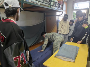 為營(yíng)造整潔、文明、和諧的社區(qū)環(huán)境,促進(jìn)中外學(xué)生文化交流與融合,11月20日,國(guó)際教育中心黨支部書(shū)記葉曉星帶領(lǐng)國(guó)際學(xué)生宿舍代表一行前往博學(xué)社區(qū)與致遠(yuǎn)社區(qū),開(kāi)展了社區(qū)建設(shè)學(xué)習(xí)交流活動(dòng)。國(guó)際學(xué)生們走進(jìn)博學(xué)社區(qū)的“標(biāo)桿宿舍”進(jìn)行實(shí)地參觀。中外學(xué)子親切交流,深入探討如何養(yǎng)成良好的衛(wèi)生習(xí)慣、合理規(guī)劃宿舍空間等實(shí)用技巧,現(xiàn)場(chǎng)氣氛熱烈而融洽。退役士兵代表還現(xiàn)場(chǎng)展示并指導(dǎo)內(nèi)務(wù)整理,讓國(guó)際學(xué)生在動(dòng)手實(shí)踐中,切身感受到了中國(guó)內(nèi)務(wù)管理的嚴(yán)謹(jǐn)與規(guī)范。 隨后,國(guó)際學(xué)生一行實(shí)地參觀了兩個(gè)社區(qū)的文化建設(shè)與氛圍布置。從獨(dú)具特色的文化墻到功能齊全的公共空間,這些溫馨和諧的社區(qū)場(chǎng)景,不僅提供了寶貴的管理經(jīng)驗(yàn),更搭建起一座中外文化互鑒的友誼橋梁。