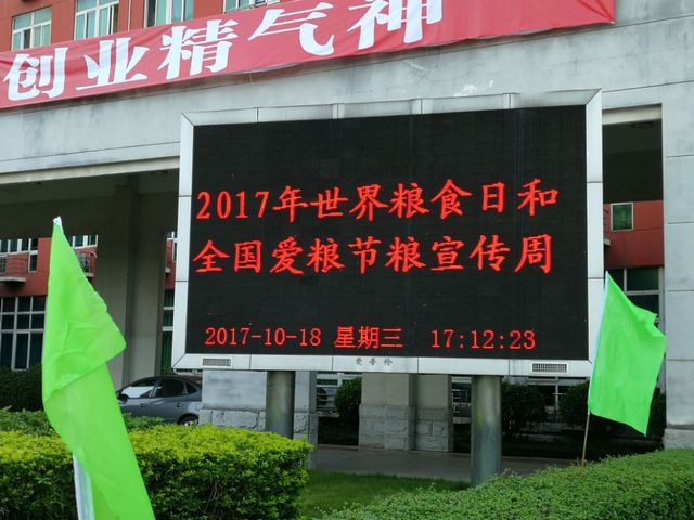 2.制作愛糧節(jié)糧主題橫幅10面,分別懸掛于學校食堂、超市、田徑場等處,并通過電子屏做好宣傳,營造良好的氛圍;