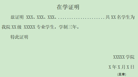 在學(xué)證明(模板如下)