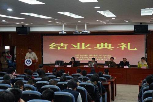 2015年1月9日下午,福州職業(yè)技術(shù)學(xué)院與廣州鐵路職業(yè)技術(shù)學(xué)院共同隆重舉行2012級(jí)城市軌道交通運(yùn)營(yíng)管理和城市軌道交通車輛兩個(gè)專業(yè)合作辦學(xué)班的結(jié)業(yè)典禮。福州職業(yè)技術(shù)學(xué)院黨委副書(shū)記林福榮、廣州鐵路職業(yè)技術(shù)學(xué)院副院長(zhǎng)林姚、福州職業(yè)技術(shù)學(xué)院黨委工作部、學(xué)生工作處、交通工程系等相關(guān)院系與職能部門負(fù)責(zé)人及2012級(jí)101名學(xué)員參加儀式。 廣州鐵路職業(yè)技術(shù)學(xué)院教務(wù)處副處長(zhǎng)蔡勤生首先介紹了學(xué)院交通工程系2012級(jí)城軌兩個(gè)專業(yè)的學(xué)生在專業(yè)學(xué)習(xí)和教育管理的基本情況,對(duì)同學(xué)們?cè)趶V州鐵路職業(yè)技術(shù)學(xué)院一年來(lái)的學(xué)生和思政表現(xiàn)給予了高度評(píng)價(jià)與肯定。劉?楠同學(xué)代表合作辦學(xué)班學(xué)生向大會(huì)匯報(bào)學(xué)習(xí)情況,并對(duì)廣州鐵路職業(yè)技術(shù)學(xué)院師生給予的幫助與關(guān)懷表示感謝,希望在未來(lái)的工作崗位上做出成績(jī),以報(bào)答兩校的培育之恩。