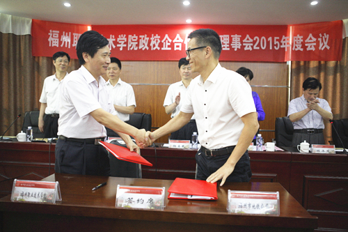 - 2015年9月18日下午,福州城市地鐵有限責(zé)任公司總經(jīng)理潘紅衛(wèi)與福州職業(yè)技術(shù)學(xué)院副院長(zhǎng)劉松林簽訂了合作辦學(xué)協(xié)議,正式確立福州城市地鐵有限責(zé)任公司2015級(jí)三年制訂單班在福州職業(yè)技術(shù)學(xué)院進(jìn)行委托培養(yǎng)。福州市人民政府楊益民市長(zhǎng)、陳曄副市長(zhǎng)以及政府相關(guān)部門和行業(yè)企業(yè)領(lǐng)導(dǎo)共同見證了簽字儀式。