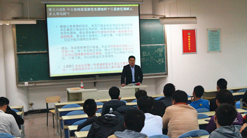 講座上 ,來自中國海峽人才市場的丁龍印老師首先通過PPT就同學(xué)們心中的一些問題逐個(gè)解答,然后向我們介紹了,丁老師通過舉例“新錄用公務(wù)員工齡計(jì)算問題”反復(fù)強(qiáng)調(diào)就業(yè)協(xié)議書、報(bào)到證和檔案對(duì)職業(yè)生涯發(fā)展的重要性,及對(duì)人事代理的作用可謂至關(guān)重要。除此之外,丁老師還介紹了工齡計(jì)算,還例舉了“檔案沒更新,事業(yè)單位錄用受阻”的一篇新聞報(bào)道,更進(jìn)一步證實(shí)了人事代理的重要性。