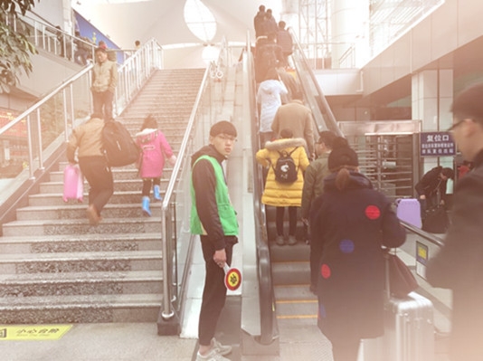 ★365星級(jí)志愿者名片★【感動(dòng)瞬間】之 鐵路春運(yùn)篇 一抹綠色 (薛夢(mèng)楠/文 薛夢(mèng)楠/圖) 隨著春運(yùn)的氣氛越來(lái)越濃烈,每一個(gè)乘客臉上都是回家的喜悅中夾雜著一絲擔(dān)心趕不上火車的焦慮。為了能給歸心似箭的人們一些安定,福職院交通工程系鐵路春運(yùn)志愿者所能做的就是一個(gè)一個(gè)的去安撫他們著急進(jìn)站的心,耐心的解答他們所有的疑慮,對(duì)每個(gè)乘客給予最溫暖的陽(yáng)光般的幫助。 同學(xué)們都珍惜此次青年志愿者活動(dòng)機(jī)會(huì),不斷提升服務(wù)意識(shí)與服務(wù)本領(lǐng);熱情服務(wù),體現(xiàn)志愿者“奉獻(xiàn)、友愛(ài)、互助、進(jìn)步”的服務(wù)精神;注意自身形象,樹立責(zé)任意識(shí),為旅客提供優(yōu)質(zhì)的服務(wù);嚴(yán)格遵守規(guī)章制度,團(tuán)結(jié)一致、堅(jiān)持不懈,積極的準(zhǔn)備著各項(xiàng)工作任務(wù)。 在工作中,志愿者們?cè)诜?wù)臺(tái)的耐心的為每個(gè)前來(lái)詢問(wèn)的旅客解答問(wèn)題,解決麻煩,提供給每一個(gè)旅客最準(zhǔn)確最快速的解決方法;志愿者們?cè)陔娞菘谝痪湟痪洳粎捚錈┑奶嵝堰^(guò)往的旅客注意腳下安全,提醒帶小孩的旅客和帶了很多行李的旅客注意安全,更在有旅客即將在電椅跌倒時(shí)及時(shí)的按下暫停鍵,防止旅客更多的受傷;志愿者們?cè)谶M(jìn)站口用最洪亮的聲音提醒每一位乘客準(zhǔn)備好車票和身份證有秩序的排隊(duì)進(jìn)站,提前兩個(gè)小時(shí)進(jìn)站,不要插隊(duì)做文明的乘客,防止了進(jìn)站口的擁擠。 或許大家所做的只是舉手之勞,但是志愿者所給予給來(lái)往人們的是最溫暖的如陽(yáng)光般的幫助?;蛟S每天下班充斥我們一身的是勞累,但是迎接一句又一句的謝謝是我們接下去的動(dòng)力?;蛟S還未經(jīng)歷社會(huì)的同學(xué)們不懂得人間苦樂(lè),但是在這幾天的志愿者活動(dòng)中似乎已經(jīng)嘗遍了酸甜苦辣。 |