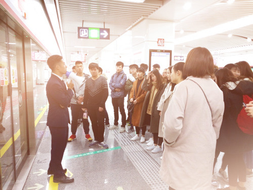 隨后帶隊(duì)老師和同學(xué)們一共參觀了五個(gè)崗位,分別是站臺(tái)、站廳、自動(dòng)售票機(jī)、扶梯、進(jìn)出站口。站務(wù)員生動(dòng)活潑地為大家介紹了各個(gè)崗位的職責(zé)、注意事項(xiàng)和工作要領(lǐng),原本嚴(yán)肅的話題被站務(wù)員用風(fēng)趣幽默的語(yǔ)言變得有趣起來(lái),同學(xué)們的積極性也被帶動(dòng)起來(lái),紛紛討論,向站務(wù)員詢問(wèn)自己感興趣的話題,大家暢所欲言。在歡聲笑語(yǔ)中,結(jié)束了這一次的踩點(diǎn),但是同學(xué)們也都做好了向著明天前進(jìn)的準(zhǔn)備。